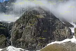 - Fijałkowski; III+, A1, miejsca A2, pierwsze przejście 3 dni