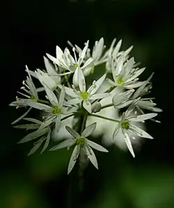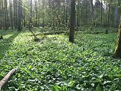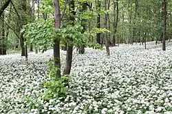 Czosnek niedźwiedzi (Allium ursinum L.) – gatunek rośliny z podrodziny czosnkowych z rodziny amarylkowatych. Rośnie dziko w runie wilgotnych lasów liściastych, często w postaci rozległych łanów. Występuje na terenie Europy, na wschodzie po Ural i Kaukaz, w Europie jest też uprawiany[4]. W Polsce częsty na południu, rzadszy na północy – na stanowiskach naturalnych objęty jest ochroną częściową. Gatunek wykorzystywany jest od dawna jako roślina jadalna, lecznicza i ozdobna. Ma właściwości lecznicze podobne do czosnku pospolitego, a przy tym wyróżnia się atrakcyjnym ulistnieniem i kwiatami. Jadalne są wszystkie części rośliny.
