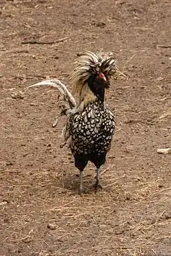 Cechą charakterystyczną jest wąski czub, zaokrąglony do góry, nie zakrywający oczu. Grzebień różyczkowy, pofałdowany, częściowo ukryty w czubie. Kura posiada krępą i zwartą sylwetkę[3].