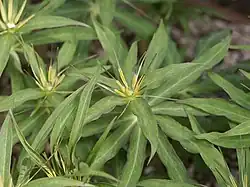 - W liczbie 4 lub wielu (rzadko 3) w okółku, ogonkowe, lancetowate do owalnych, z trzema głównymi wiązkami przewodzącymi połączonymi nerwami anastamozującymi[4].