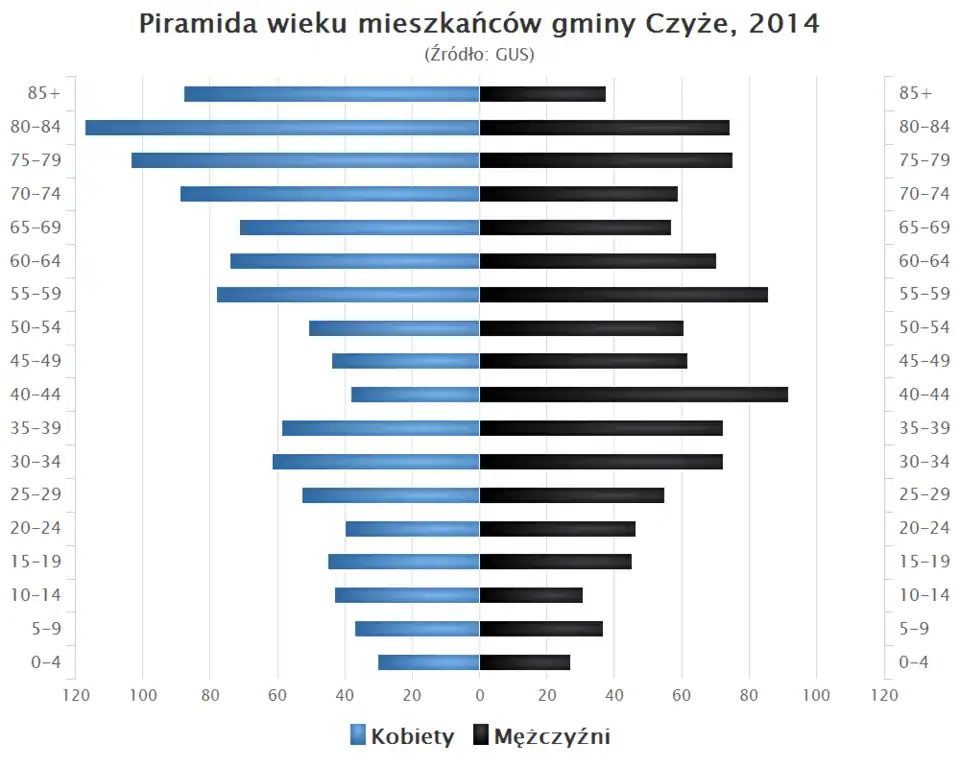 - Piramida wieku mieszkańców gminy Czyże w 2014 roku[1].