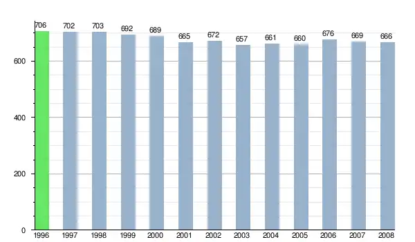 Według danych z dnia 31 grudnia 2012, wieś zamieszkiwało 681 osób, w tym 348 kobiet i 333 mężczyzn[7].