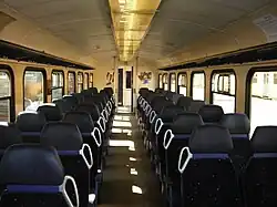 Wagon DH1 posiada dwa przedsionki drzwiowe umieszczone za kabinami maszynisty oraz jeden przedział pasażerski między nimi. Jeden z przedsionków jest większy i jest przeznaczony do przewozu większego bagażu i rowerów, natomiast z drugiego przedsionka można wejść do toalety. Przestrzeń pasażerską wyposażono w siedzenia przedsiębiorstwa Compin, które ustawiono w układzie 2+2 wzdłuż przejścia biegnącego wzdłuż osi pojazdu[2].