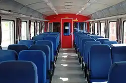 Wnętrze wagonu sterowniczego jest analogiczne z wnętrzem wagonu silnikowego z tym wyjątkiem, że w miejscu przedziału bagażowego jest większy przedział pasażerski. Wagon środkowy natomiast składa się z dwóch przedsionków wejściowych na końcach oraz identycznie urządzonego przedziału pasażerskiego pomiędzy nimi[3].