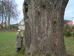 Drzewo jest jednym z najstarszych dębów w Polsce, jego wiek szacowany jest na 613 lat[2] (w 2016 roku). Ze względu na pusty środek (dla zabezpieczenia przed wywróceniem „olbrzyma” na pobliski zabytkowy kościół), fragment podstawy pnia został częściowo wypełniony betonem. Dąb jest w złym stanie zdrowotnym. Jego korona jest stosunkowo wąska (12 × 9 m), co może świadczyć o tym, że okaz jest w zaawansowanym stadium zamierania[1].