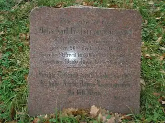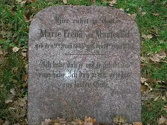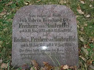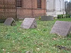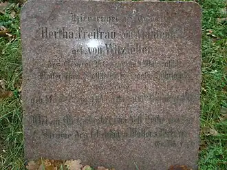 U podnóża znajduje się mały cmentarz z końca XIX wieku, z marmurowym krzyżem, na którym pochowani są członkowie rodziny Manteuffel, ich dzieci i bliscy znajomi. Tuż obok stoi zabytkowy kościół oraz kaplica, w podziemiach, której pochowani są dawni właściciele Toporowa.