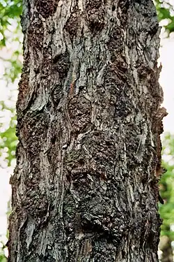 - Kora gruba, pękająca, często czarna. Młode gałązki grube i szaro owłosione.