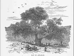- Najbardziej znanym w Biblii dębem jest Dąb Abrahama, o którym Księga Rodzaju 13,18) pisze: „Abraham zwinął swe namioty i przybył pod Hebron, gdzie były dęby Mamre”. W okolicach Hebronu rośnie bardzo stary okaz dębu skalnego, który miejscowa ludność uznaje za „dąb Abrahama”[7]. Był on chroniony prawnie, w 1998 r. jednak ostatecznie obumarł. Obok niego rośnie młodsze drzewo tego gatunku, które w przyszłości przejmie rolę dębu Abrahama[8].