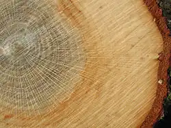 - Widoczne naczynia duże w drewnie wczesnym, w drewnie późnym występują naczynia małe zebrane w promieniowo zorientowane zgrupowania. Słoje roczne wyraźne. Występują promienie drzewne szerokie i jednorzędowe. Promienie drzewne szerokie, widoczne na wszystkich przekrojach, jednorzędowe niewidoczne.
