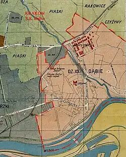 - ↑ Ustawa z dnia 19. grudnia 1910 w przedmiocie przyłączenia do miasta Krakowa gminy Dąbie z Beszczem i Głębinowem, tudzież gminy Ludwinów i obszaru dworskiego Ludwinów — wyłączenia tychże gmin i obszaru dworskiego z okręgów Rad powiatowych Krakowskiej i Wielickiej oraz w przedmiocie zmiany § 18 i § 53 ustęp 1 statutu stoł. król. miasta Krakowa. Dziennik Ustaw i Rozporządzeń Krajowych dla Królestwa Galicyi i Lodomeryi wraz z Wielkiem Księstwem Krakowskiem. 1910, cz. XXXV, nr 243