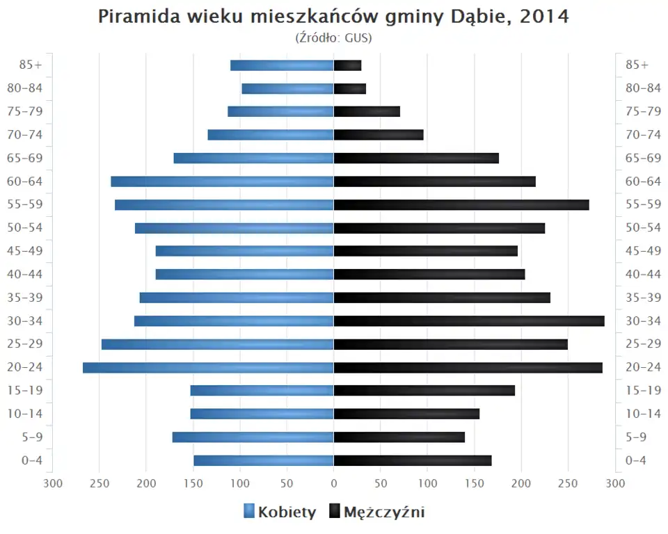 - Piramida wieku mieszkańców gminy Dąbie w 2014 roku[1].