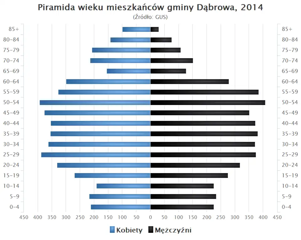 - Piramida wieku mieszkańców gminy Dąbrowa w 2014 roku[1].