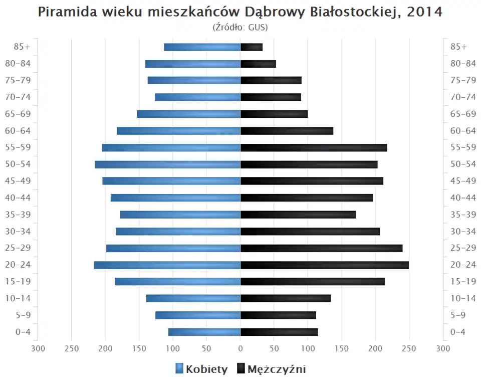 - Piramida wieku mieszkańców Dąbrowy Białostockiej w 2014 roku[21].