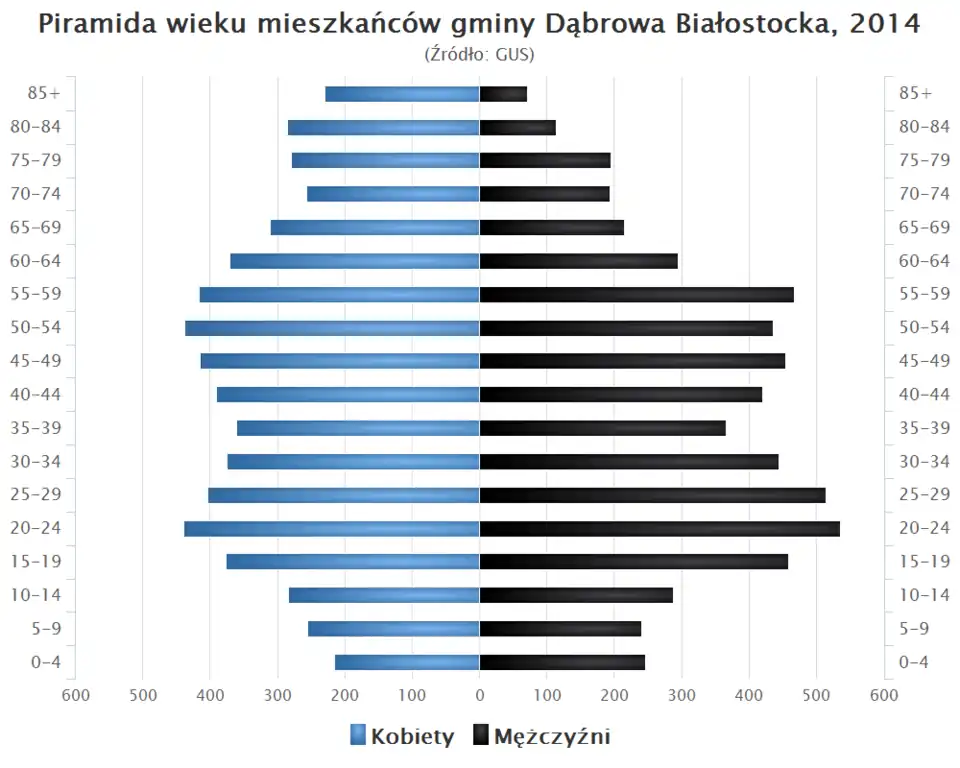 - Piramida wieku mieszkańców gminy Dąbrowa Białostocka w 2014 roku[1].