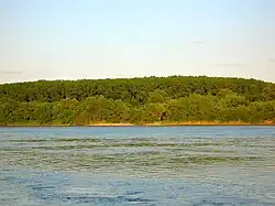 Widok wsi Czarże z przeciwległego brzegu Wisły