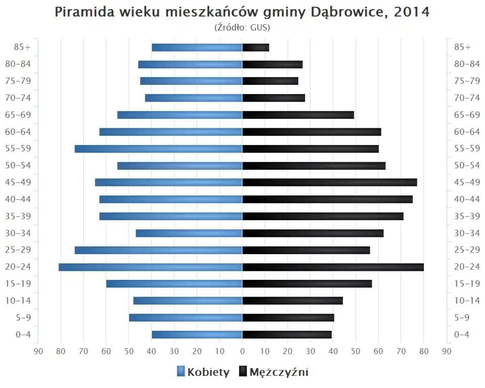 - Piramida wieku mieszkańców gminy Dąbrowice w 2014 roku[1].