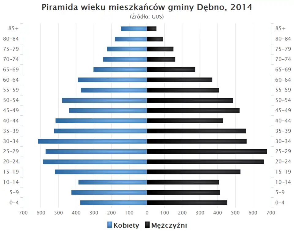 - Piramida wieku mieszkańców gminy Dębno w 2014 roku[1].