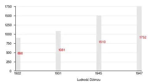 W 1596 we wsi Dżimzu mieszkało 154 mieszkańców, którzy płacili podatki z upraw pszenicy, jęczmienia, owoców i hodowli kóz oraz uli[2].