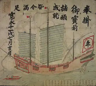 Pierwsze zdolne do wypłynięcia na otwarte wody oceaniczne okręty wojenne powstały w Japonii na początku XVII w. dzięki kontaktom z krajami Zachodu podczas okresu handlu z Nanban. W 1613 r. daimyō z Sendai, porozumiawszy się z siogunami z rodu Tokugawa, wybudował 500-tonowy galeon Date Maru, który przewiózł do Ameryki i Europy misję dyplomatyczną pod przewodnictwem Tsunenagi Hasekury. Począwszy od 1604 siogun zamówił, głównie na potrzeby handlu z Azją Południowo-Wschodnią, łącznie około 350 uzbrojonych statków handlowych, w większości korzystających z zachodnich rozwiązań konstrukcyjnych.