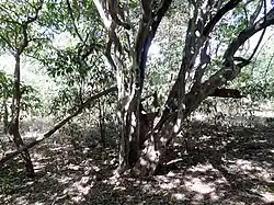- Niewielkie i silnie rozgałęzione drzewo o wysokości zazwyczaj do 7,5 m, czasami jednak do 15 m. W pierśnicy osiąga grubość zazwyczaj około 40 cm, znane są jednak drzewa o pierśnicy powyżej 60 cm[6].