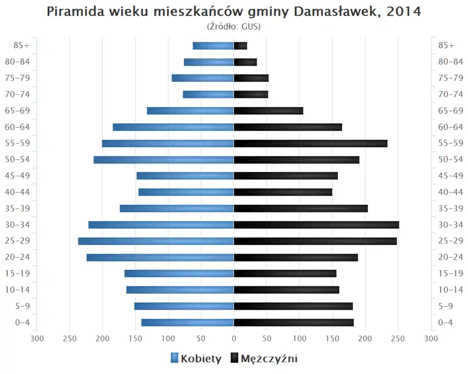- Piramida wieku mieszkańców gminy Damasławek w 2014 roku[1].