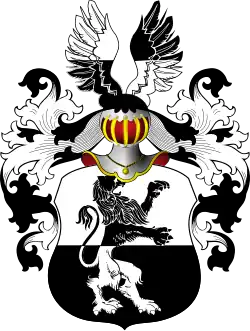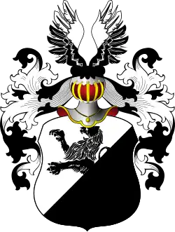 Damerkow odmienny: Na tarczy dzielonej w pas, srebrnej i czarnej, lew wspięty w lewo, czarno-srebrny na przemian. W klejnocie nad hełmem bez korony dwa skrzydła orle dwudzielne w pas - prawe czarne i srebrne, lewe srebrne i czarne. Labry czarne, podbite srebrem.