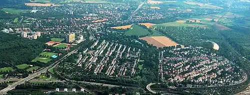 Osiedle nie zostało ukończone wedle pierwotnego planu ze względu na kryzys gospodarczy roku 1929. Po przejęciu władzy przez narodowych socjalistów, którzy odrzucali nowe budownictwo, powstały od 1934 domy ze spadzistym dachem, utrzymane w tradycyjnym stylu ojczyźnianym. W latach 1936–1938 powstał kościół św. Franciszka, o formach zainspirowanych przez szkołę stuttgarcką. Po 1949 powstało kilka galeriowców, posiadających ponownie cechy modernistyczne.