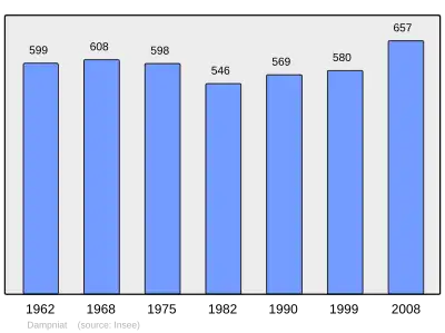 Według danych na rok 1990 gminę zamieszkiwało 569 osób, a gęstość zaludnienia wynosiła 37 osób/km² (wśród 747 gmin Limousin Dampniat plasuje się na 227. miejscu pod względem liczby ludności, natomiast pod względem powierzchni na miejscu 435.).