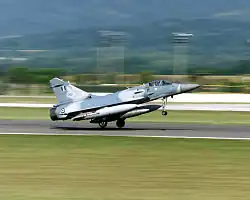 Polemikí Aeroporía – 20 lipca 1985 roku Grecja podpisała kontrakt, w ramach którego nabyła 40 samolotów Mirage 2000 wraz z dużym pakietem uzupełniającym. W jego skład wschodziło przenoszone przez samoloty uzbrojenie. Program szkolenia greckiego personelu latającego i naziemnego. Wsparcie procesu eksploatacji samolotów. Transfer technologii, w ramach którego Greckie zakłady Hellenic Aerospace Industry (gr. Ελληνική Αεροπορική Βιομηχανία) otrzymały prawo do licencyjnej produkcji silników Snecma M53-P2 w jakie wyposażone były greckie Mirage. Wśród zakupionych samolotów znalazło się 36 jednomiejscowych Mirage 2000EG i cztery dwumiejscowe Mirage 2000BG. Pierwsze maszyny zostały oficjalnie przekazane greckim siłom powietrznym we Francji 21 marca 1988 roku. 27 kwietnia tego samego roku przyleciały o własnych siłach do Grecji. Z powodu niemożności uregulowania zaległych płatności przez Grecję, Francja wstrzymała dostawy samolotów w październiku 1989 roku po dostarczeniu 28 maszyn. Po spłaceniu zaległości, dostawy zostały wznowione i do 18 listopada 1992 roku do Grecji dotarły wszystkie zamówione samoloty. W latach 90. zmieniono oznaczenie miejscowych maszyn na Mirage 2000EGM i Mirage 2000BGM. Otrzymały je samoloty, które przeszły modernizację w ramach programu „Talos”. Dzięki niej zyskały zdolność do przenoszenia pocisków powietrze-powietrze Super 530D i przeciwokrętowych pocisków rakietowych Exocet AM39 Block II. 30 kwietnia 1999 roku, greckie Ministerstwo Obrony, upubliczniło informacje o zamiarze powiększenia floty Mirage 2000 o kolejne 15 maszyn w wersji Mirage 2000-5 Mk 2, w tym dziesięć jednomiejscowych i pięć dwumiejscowych. 21 sierpnia 2000 roku podpisano umowę zakupu, obejmującą również modernizację do nowego standardu będące na wyposażeniu dziesięciu Mirage 2000EGM. Kolejne problemy finansowe, jakie nawiedziły realizacje umowy, były powodem, dla którego dostawy nowych samolotów zrealizowano dopiero w drugiej połowie 2007 roku. Ostatni dostarczony do Grecji Mirage 2000 w grudniu 2007 roku był równocześnie ostatnim wyprodukowanym samolotem Mirage 2000 w zakładach Dassault. Modernizacja objęła instalacje sondy do tankowania w powietrzu. Nowy radar RDY-2, system kolorowych wyświetlaczy w kabinie pilota, zmodernizowany do standardu ICMS Mk3 system samoobrony, układ nawigacji bezwładnościowej Totem 3000. Maszyny zostały przystosowane do przenoszenia pocisków SCALP-EG oraz MICA. Utraciły jednak możliwość walki z wykorzystaniem przeciwokrętowych Exocet. 23 grudnia 2019 roku Ministerstwo Obrony poinformowało o podpisaniu umowy z firmami Dassault, Safran i Thales, której celem jest konserwacja i modernizacja posiadanej floty Mirage 2000-5. Z powodu różnego rodzaju awarii i katastrof, greckie siły powietrzne utraciły do 2020 roku 13 egzemplarzy Mirage 2000. Do 2020 roku siły powietrzne były w posiadaniu 16 maszyn w wersji Mirage 2000EGM, dwóch Mirage 2000BGM oraz 24 maszyn w wersji Mirage 2000-5 Mk 2. Greckie samoloty są na wyposażeniu 114 Skrzydła Bojowego stacjonującego w bazie lotniczej w Tanagra. W skład skrzydła wchodzą dwie eskadry 331 Eskadra Myśliwców Przechwytujących „Tezeusz” (Mirage 2000-5 Mk2) oraz 332 Eskadra Myśliwców Przechwytujących „Sokół” – (Mirage 2000BGM/EGM3). Następcami greckich Mirage 2000 zostały Dassault Rafale[5][3].