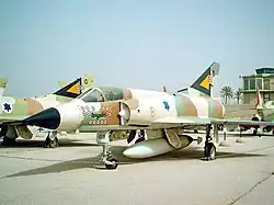 Dassault Mirage III – ponaddźwiękowy samolot myśliwski produkcji francuskiej zbudowany w układzie skrzydła delta, bez usterzenia poziomego. Wersję szturmową opartą na Mirage’u III nazwano Mirage 5.