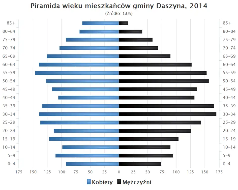 - Piramida wieku mieszkańców gminy Daszyna w 2014 roku[1].