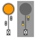 ![]() St2 Pomarańczowe światło na semaforze, zwrócone do pociągu |