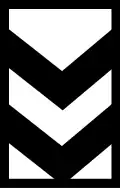![]() W14 Prostokątna biała tablica z czarnym obramowaniem, a na niej dwa czarne kąty, jeden na drugim, zwrócone wierzchołkami ku dołowi |
