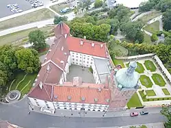 ![]() Dawne opactwo benedyktyńskie po lewej stronie katedry na Wzgórzu Tumskim w 1863 r. | |