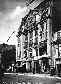 Okazała kamienica była siedzibą firmy „Siemens & Halske” – dostawcy i wykonawcy instalacji elektrotechnicznych w łódzkich przędzalniach, tkalniach i drukarniach. Była to jedna z kilku spółek, które po konsolidacji w 1966 roku utworzyły potentata branży elektrycznej, niemiecką firmę Siemens. W 1913 roku na parterze budynku został otwarty dom handlowy z wyrobami firmy "Siemens", w którym sprzedawano innowacyjne wówczas AGD, zgodnie z plakatami reklamowymi m.in. „ostatni wyraz techniki - elektryczne odkurzacze”, froterki, „telefony indukcyjne i bateryjne” czy „rurki do karbowania włosów”[4].