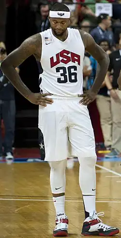 - ↑ Został powołany, nie wystąpił z powodu kontuzji ścięgna Achillesa. Jego miejsce w składzie zajął Paul George[71][72].