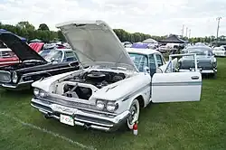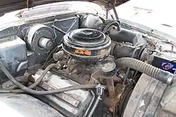 - 1 2 Moc w rzeczywistości podawana w koniach parowych (HP = 1,0139 KM). Moc silników samochodów amerykańskich podawana była przed 1972 rokiem jako moc „brutto” (gross BHP), mierzona w optymalnych warunkach na samym silniku – wyższa niż moc mierzona według późniejszych bardziej rzeczywistych norm (J. „Kelly” Flory: American Cars, 1960–1972: Every Model, Year by Year. Jefferson: McFarland & Company, 2004, s. 864. ISBN 978-0-7864-1273-0. (ang.).).