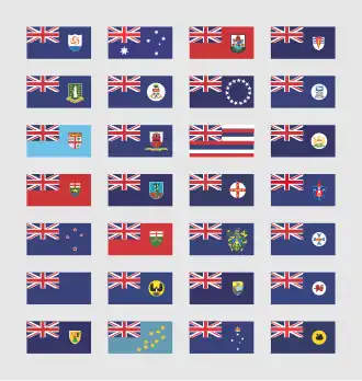 - Spośród 53 krajów Wspólnoty Narodów na flagach już tylko pięciu niepodległych państw (Australii, Fidżi, Nowej Zelandii, Tuvalu i samej Wielkiej Brytanii) znajduje się Union Jack[10][30].