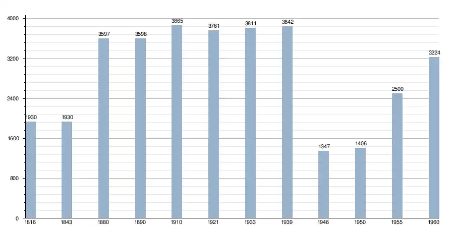 Źródło: Adam Jelonek. Ludność Miast i Osiedli Typu Miejskiego na Ziemiach Polski Od 1810 Do 1960 roku.. „Dokumentacja Geograficzna”. Zeszyt 3/4, s. 105. PAN. Instytut Geografii PAN.