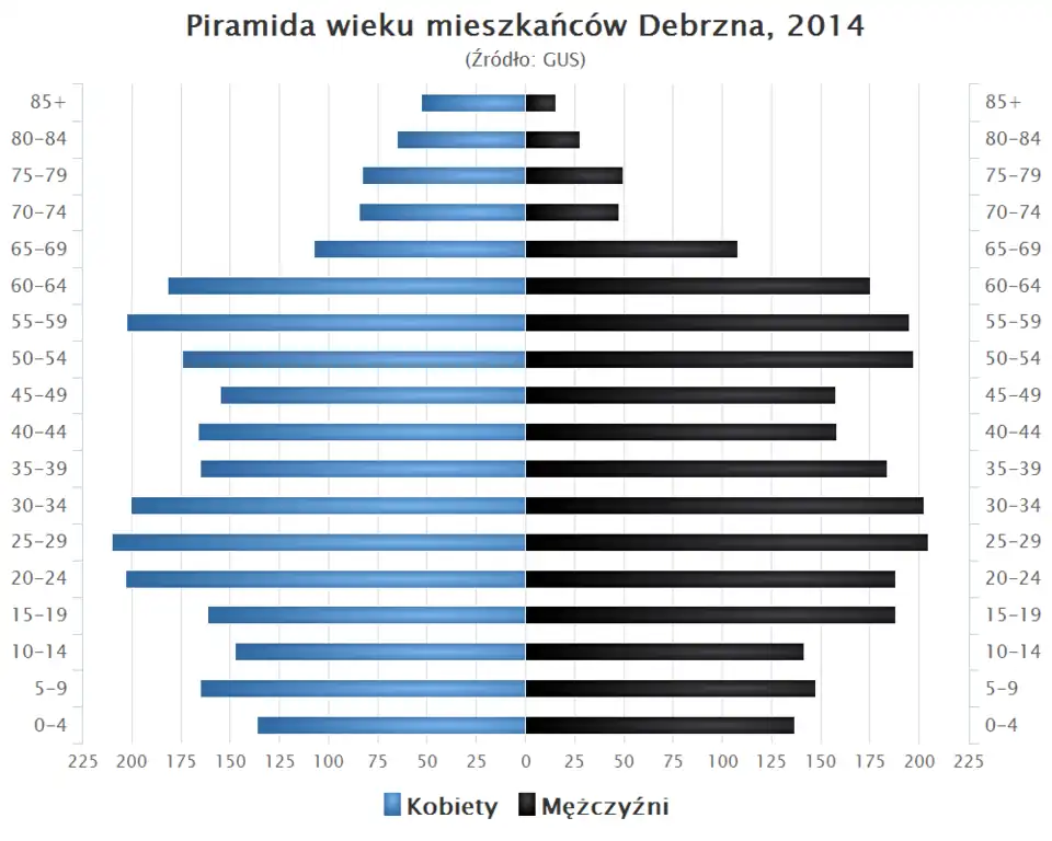 - Piramida wieku mieszkańców Debrzna w 2014 roku[4].