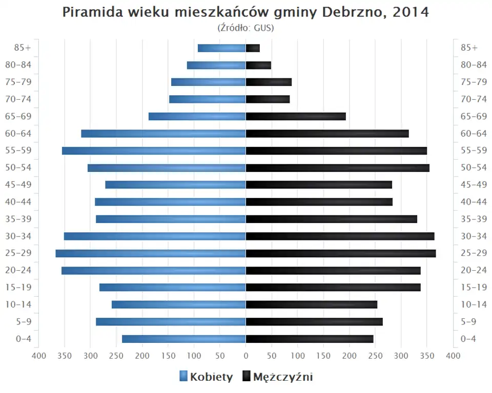 - Piramida wieku mieszkańców gminy Debrzno w 2014 roku[1].