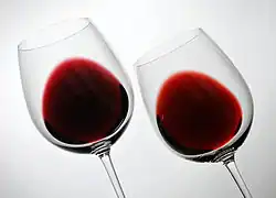 Na lepkość wina wpływa zawartość cukru, glicerolu i alkoholu, choć zwykle tylko w winach deserowych i bardzo alkoholowych mogą być zauważalne jakiekolwiek różnice. Zazwyczaj jest to parametr ignorowany przez profesjonalnych kiperów. W winie o dużej zawartości alkoholu[2] mogą się tworzyć po zakręceniu kieliszkiem tzw. „łezki”' – charakterystyczne formy na ściankach tworzone przez spływające kropelki z powrotem do kieliszka. Związane jest to z różnicami w napięciu powierzchniowym spowodowanymi nierównomiernym parowaniem alkoholu[7].
