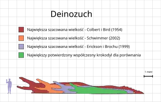 - 1 2 3 4 5 6 7 8 9 The Size of Deinosuchus. W: David R. Schwimmer: King of the Crocodylians: The Paleobiology of Deinosuchus. Indiana University Press, 2002, s. 42–63. ISBN 0-253-34087-X.