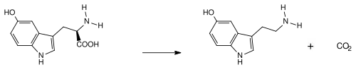 - 5-hydroksytryptofan ⇌ 3-(2-aminoetylo)-1H-indol-5-ol + CO2