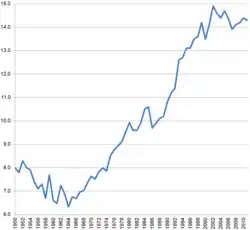 | 2012 | 9 464 | 115 893 | 126 531 | -10 638 | 12,2 | 13,4 | -1,2 | 1,62 | b.d. |