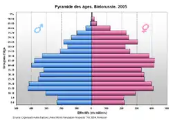 Według stanu na początek 2013 16,4% ludności Białorusi było w wieku przedprodukcyjnym, 60,1% w wieku produkcyjnym, natomiast 23,5% w wieku poprodukcyjnym[16].