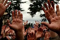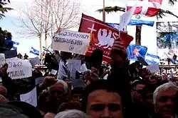 ![]() Demonstracja w Tbilisi przed budynkiem parlamentu, 10 kwietnia 2009 | |
