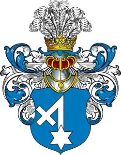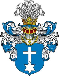 - ↑ Juliusz Karol Ostrowski: Księga herbowa rodów polskich. Cz. 2: Opisy herbów. Warszawa: Główny skład księgarnia antykwarska B. Bolcewicza, 1906, s. 57.