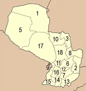 Współcześnie podział Paragwaju na departamenty wygląda następująco: