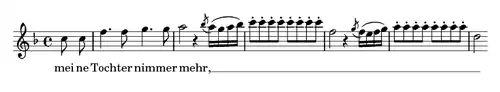 - Cicho, cicho! Hofer dochodzi do górnego F; – teraz moja szwagierka śpiewa swoją drugą arię, 'Der Hölle Rache'; z jaką mocą ona śpiewa i ma B 'Hört! hört! hört! der Mutter Schwur!'.